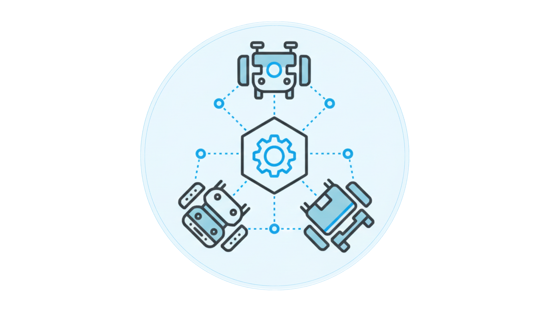 Standardized Fleet Orchestration Diverse manufacturer protocols are redesigned into a standardized data architecture. This allows heterogeneous fleets to be controlled as a single organic system within the cyber domain.